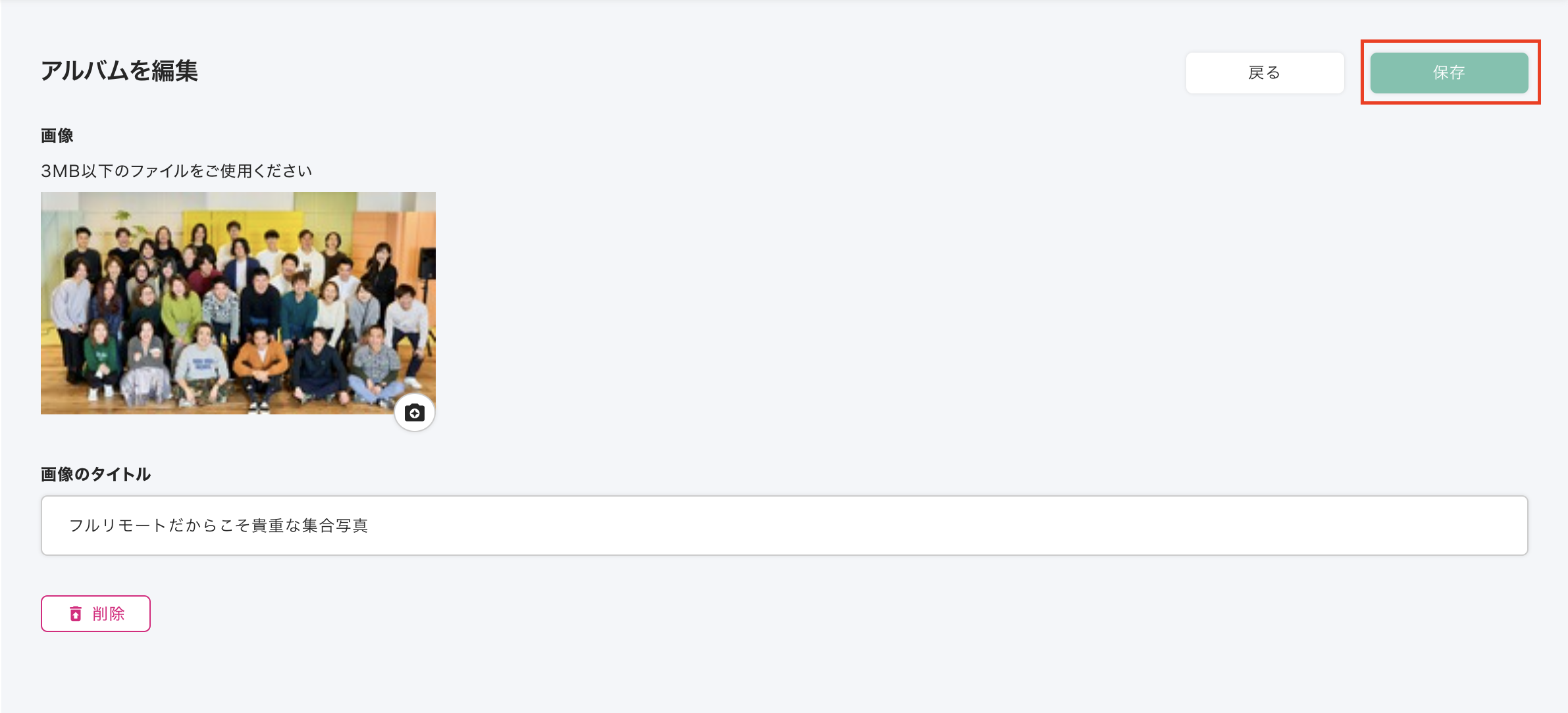 ②画像差し替え/タイトルを変更し、右上の保存を押して完了
