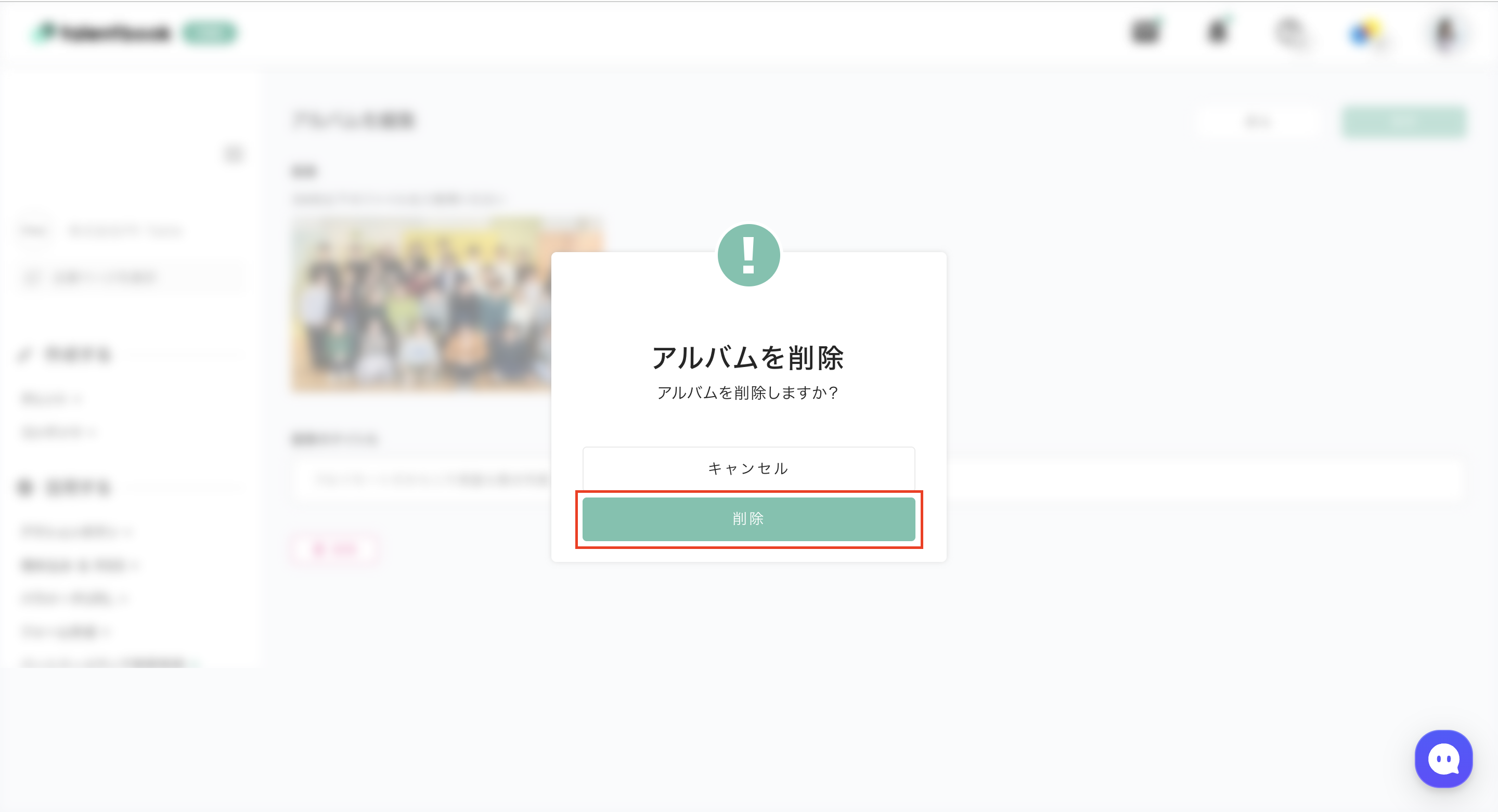 ③表示されたポップアップの「削除」ボタンをクリックして完了