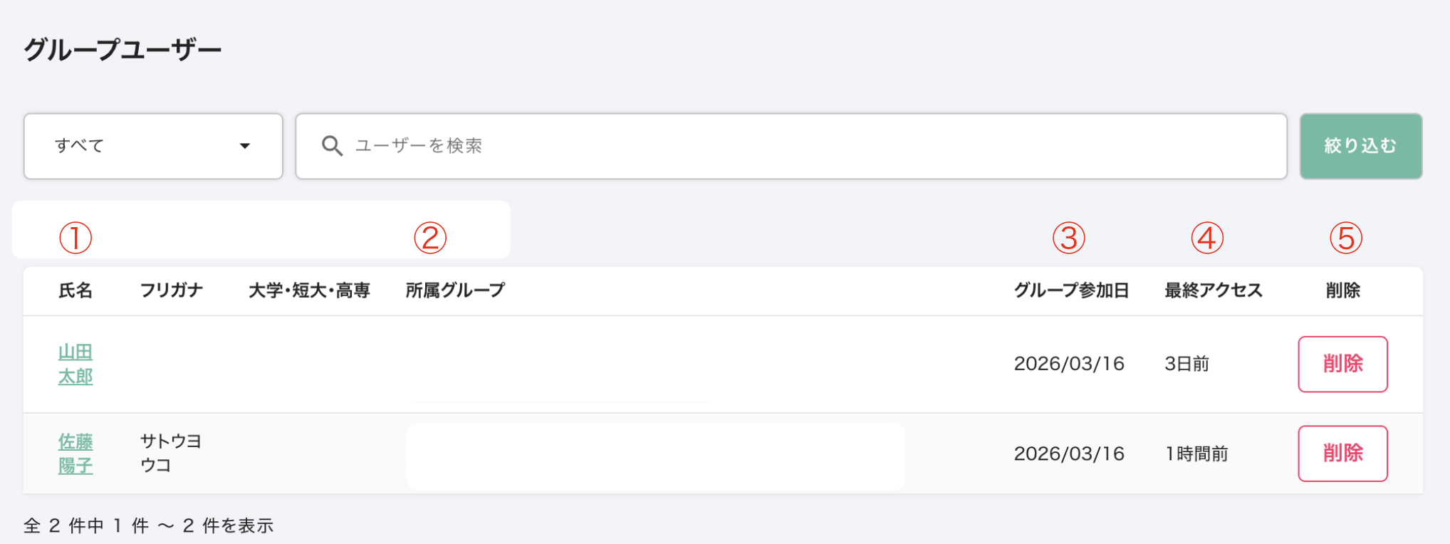 ②所属グループ