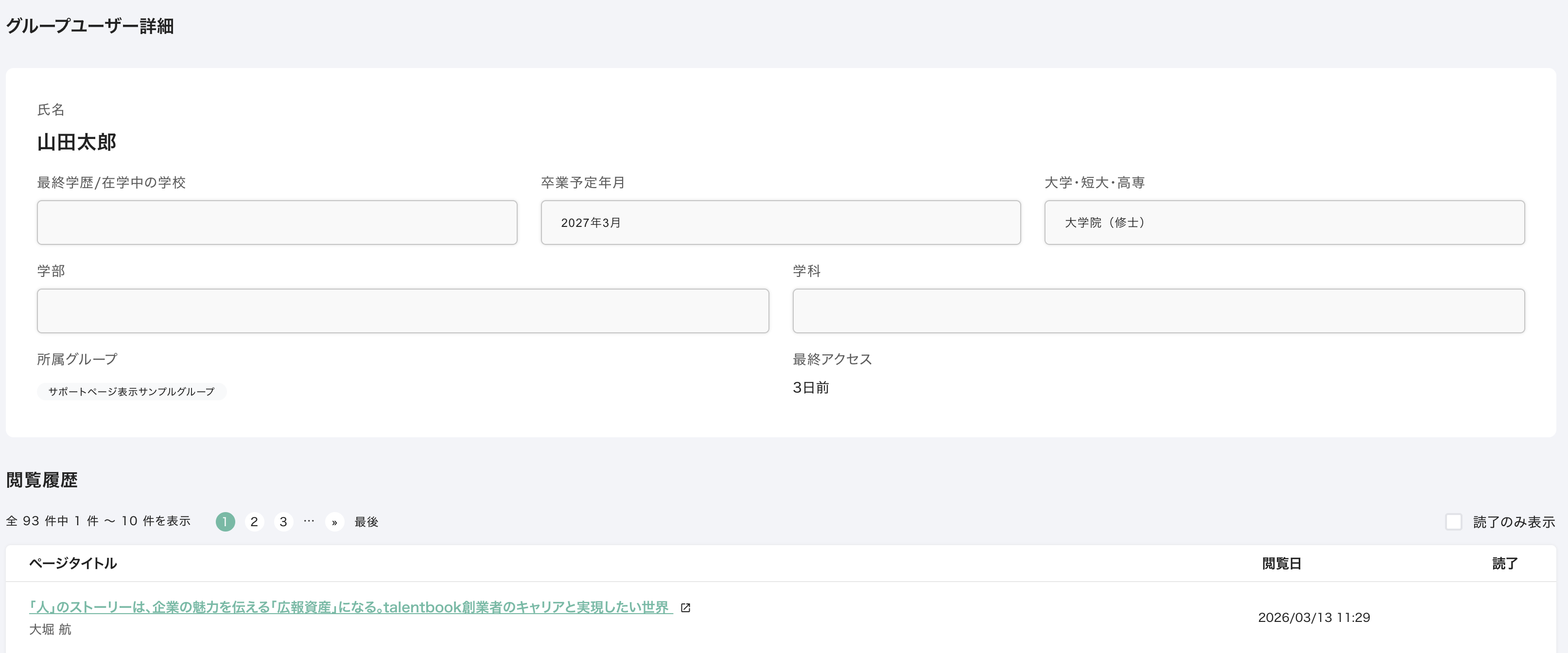 こちらで表示される閲覧履歴は、グループ参加以降のものとなります。