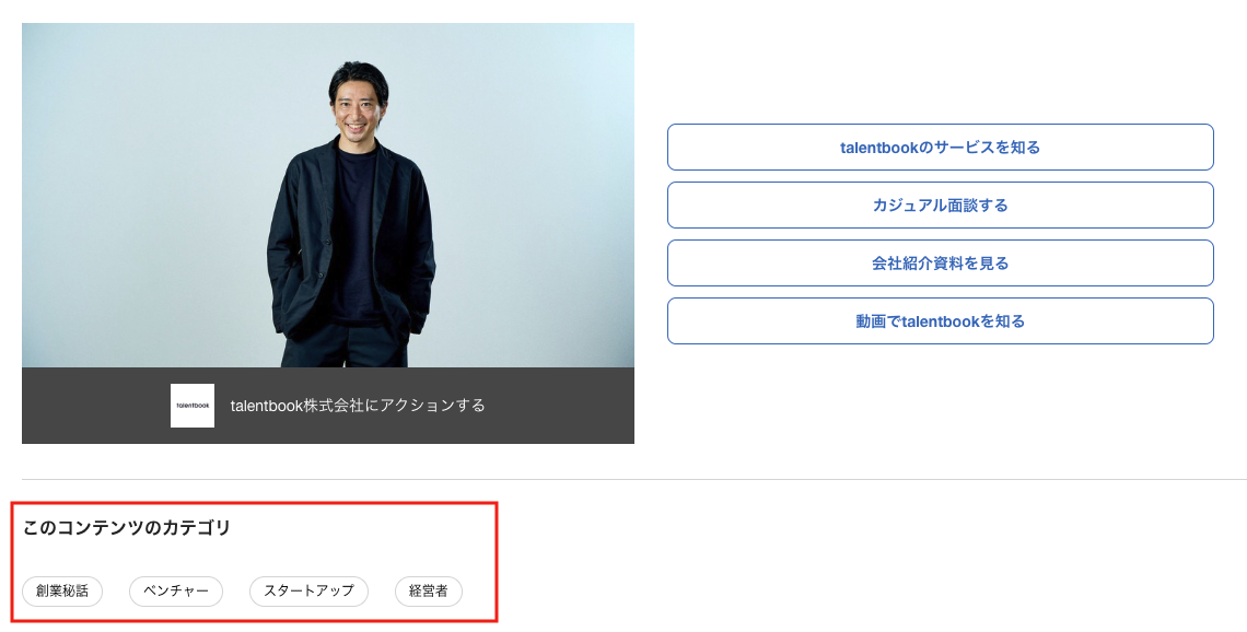 カテゴリは各コンテンツの最下部のほか、talentbookのTOPページやカテゴリ一覧に表示されます。