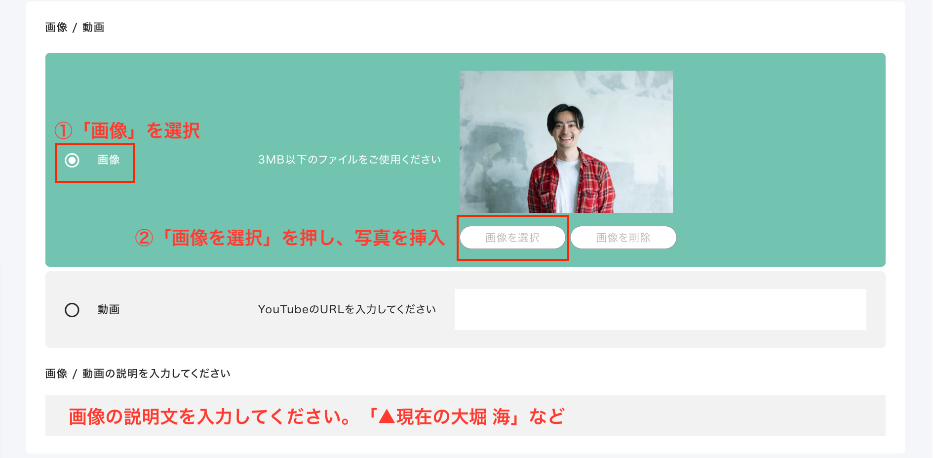 ②画像をアップロードする