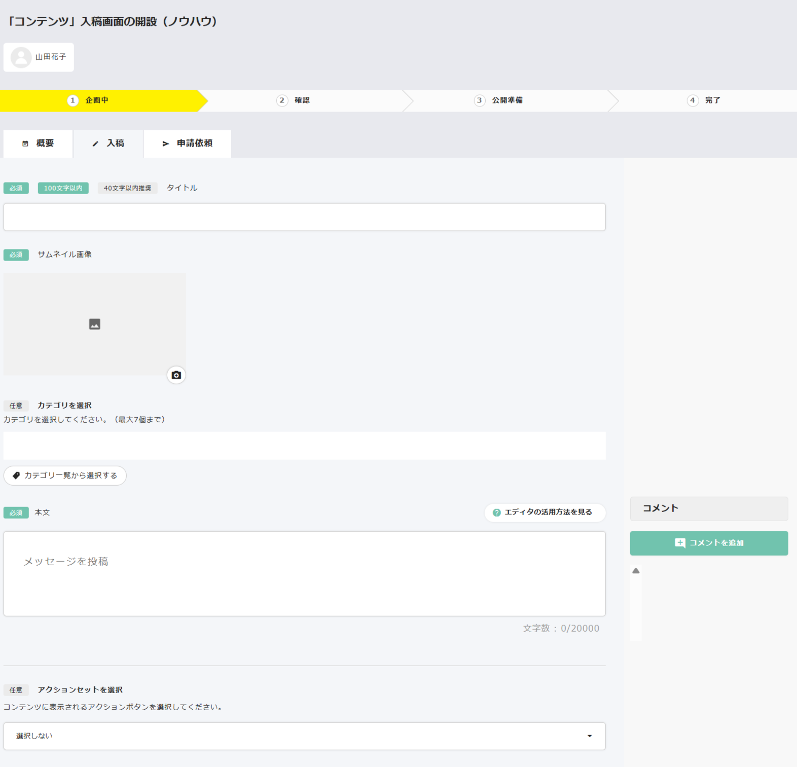 本文の入力枠を全画面で表示します
