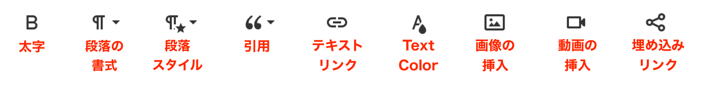 本文の枠内をクリックすると下記アイコンが表示されます。