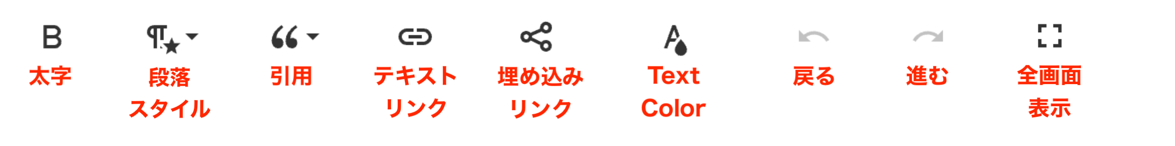 ①URLを埋め込みたいテキスト部分を選択肢し、左から2番目の記号をクリック
