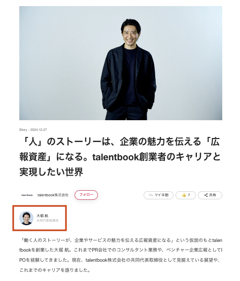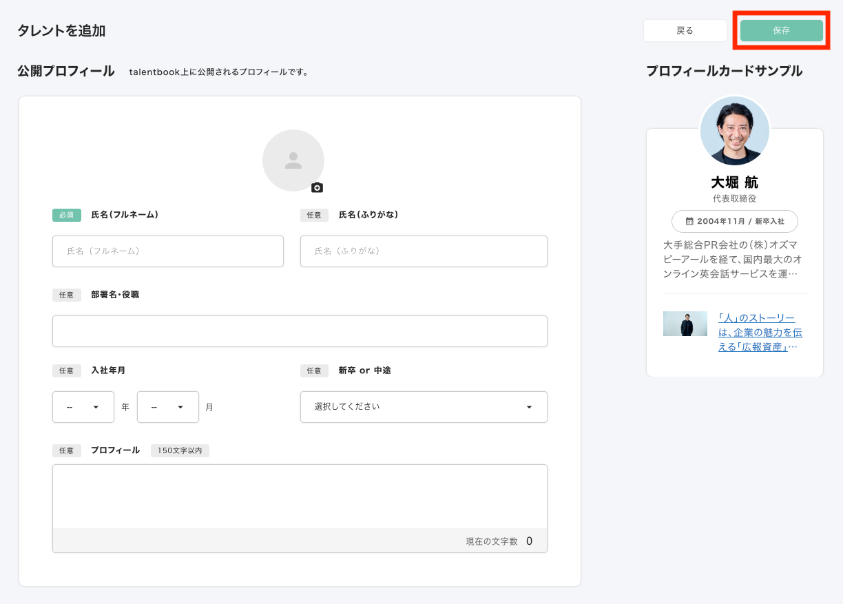 ストーリーやノウハウにはタレントのプロフィールが掲載されるため、必ず登録をしてください。