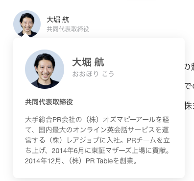 アイコンにマウスポインターを置くとプロフィールが表示されます。