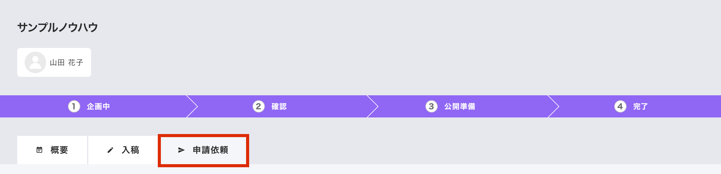入稿が完了したら、「申請依頼」タブを選択し、「公開を設定する」ボタンをクリック
