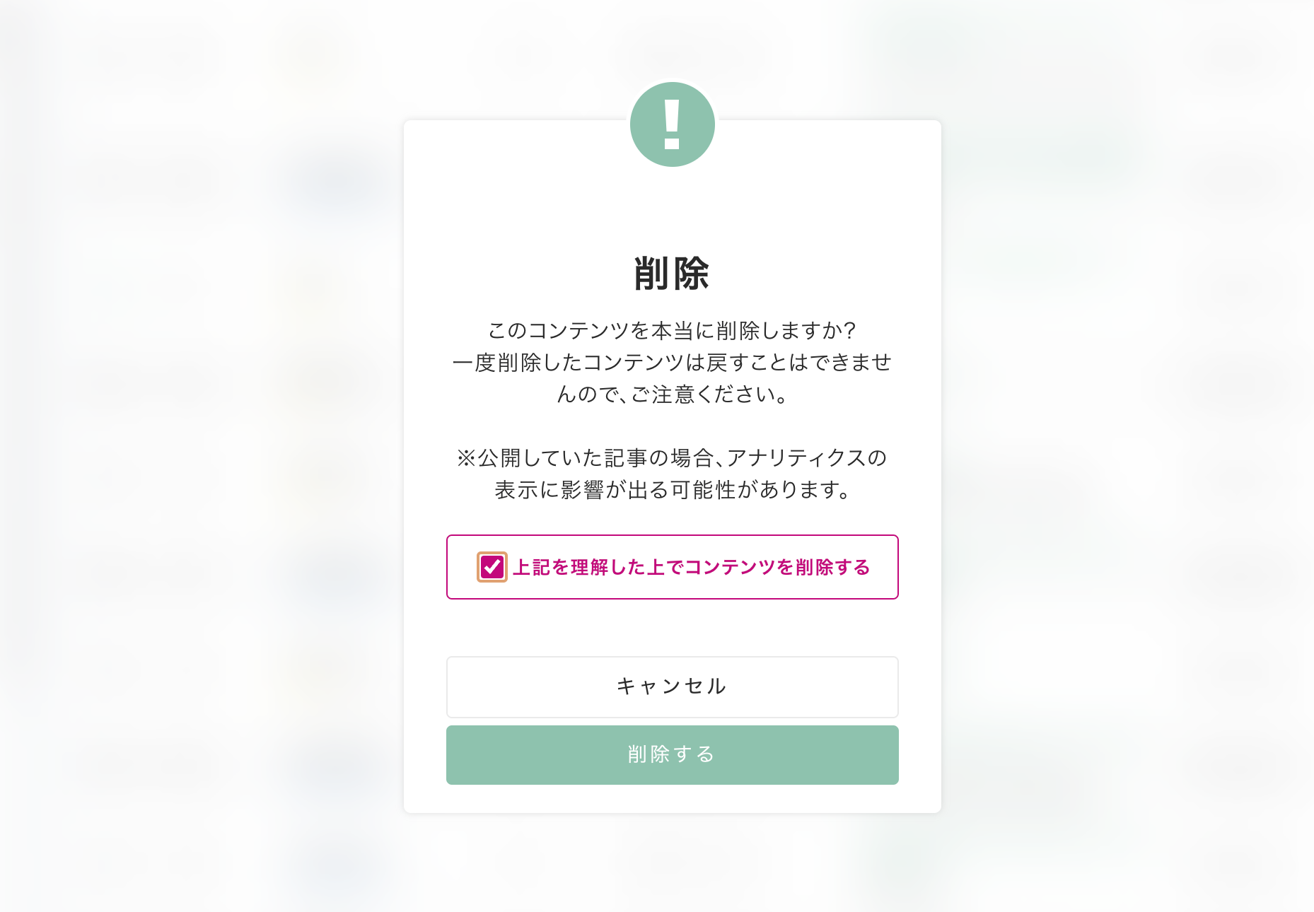 ③ポップアップで表示される内容を確認し「削除する」をクリック