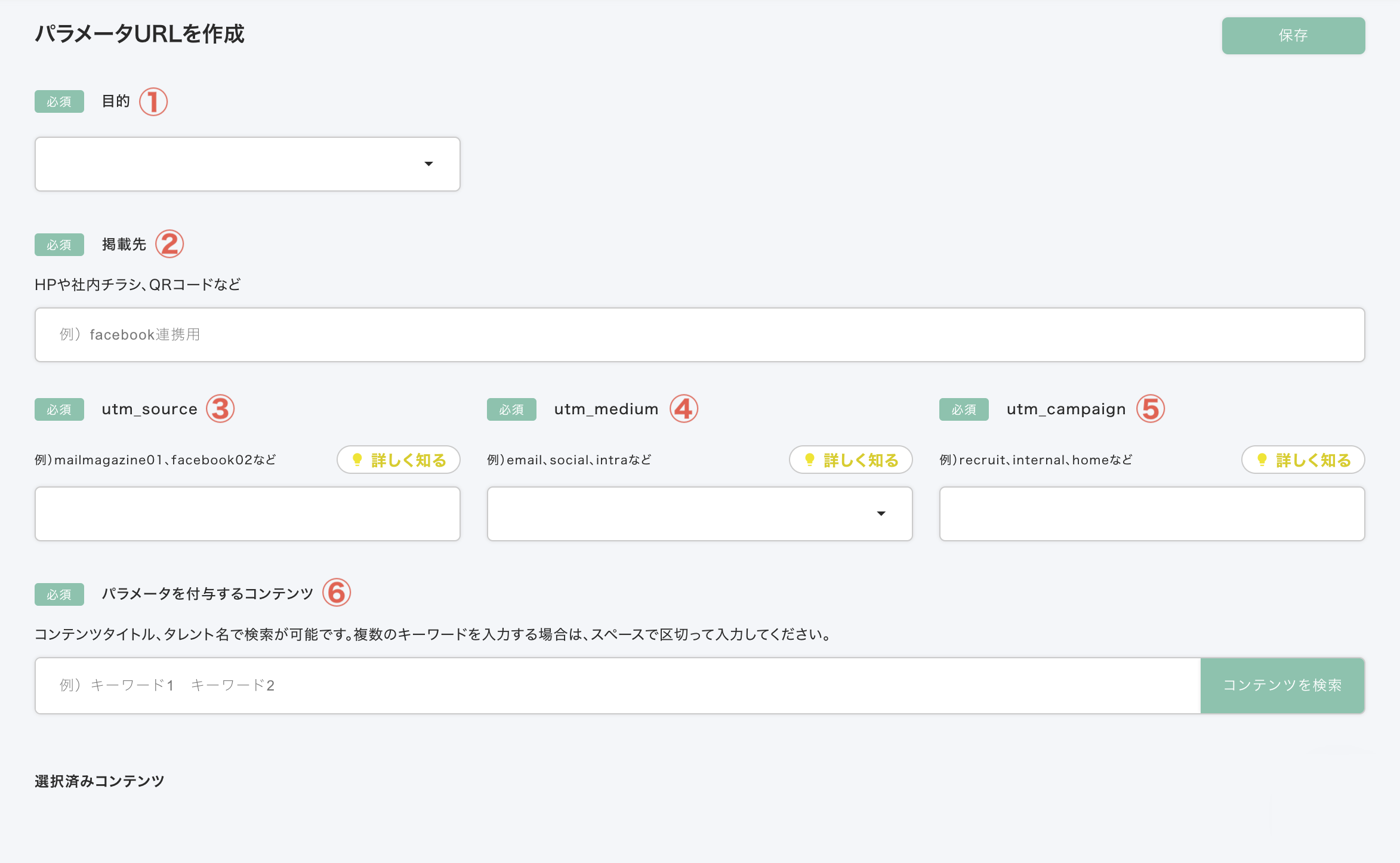 ③パラメータを付与するコンテンツを選択