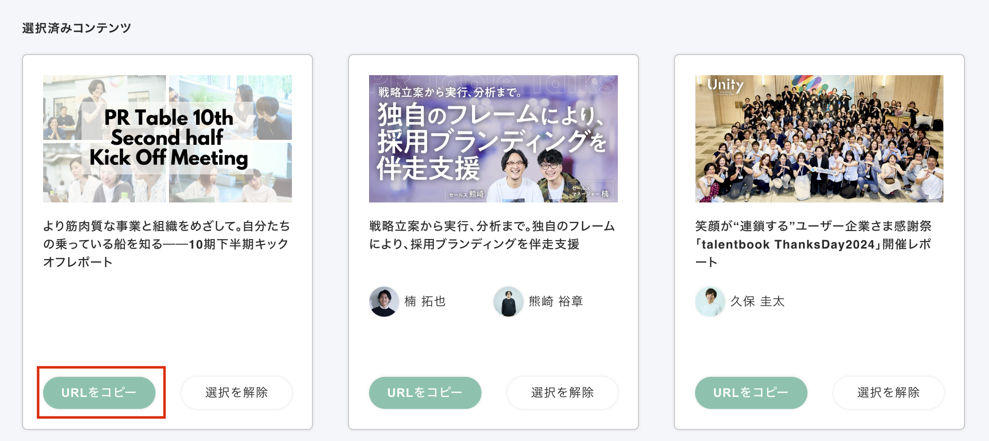 ※「選択を解除」をクリックすると選択済みコンテンツから解除されます。