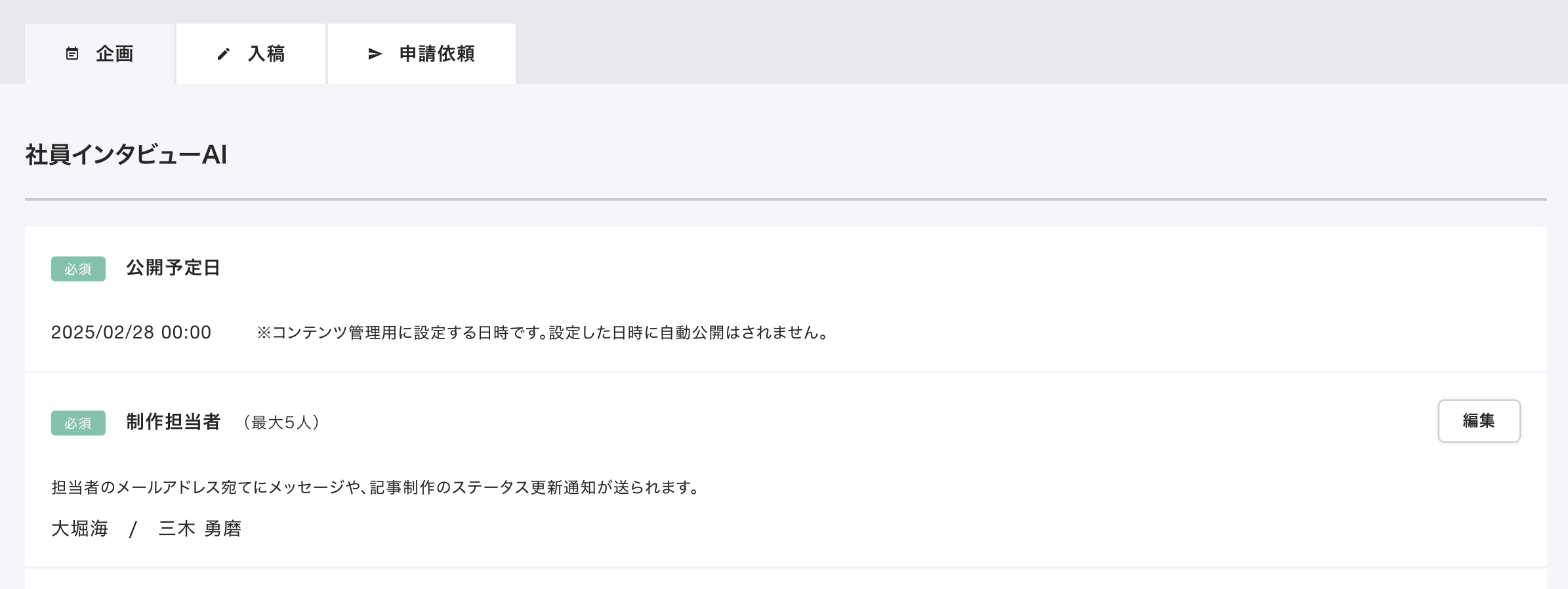 ※ 社員インタビューAI回答済みの場合のみ編集が可能です。ステータスが「質問回答中」の場合は編集ができません。