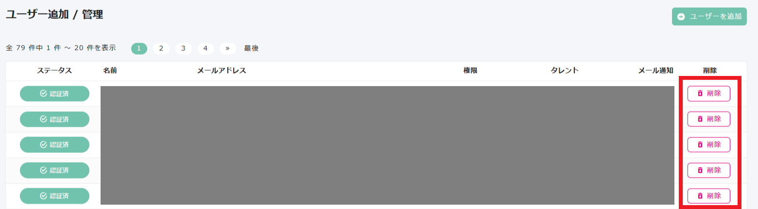 ※ 認証が完了していないユーザーには「アカウント未承認」と表示されます。