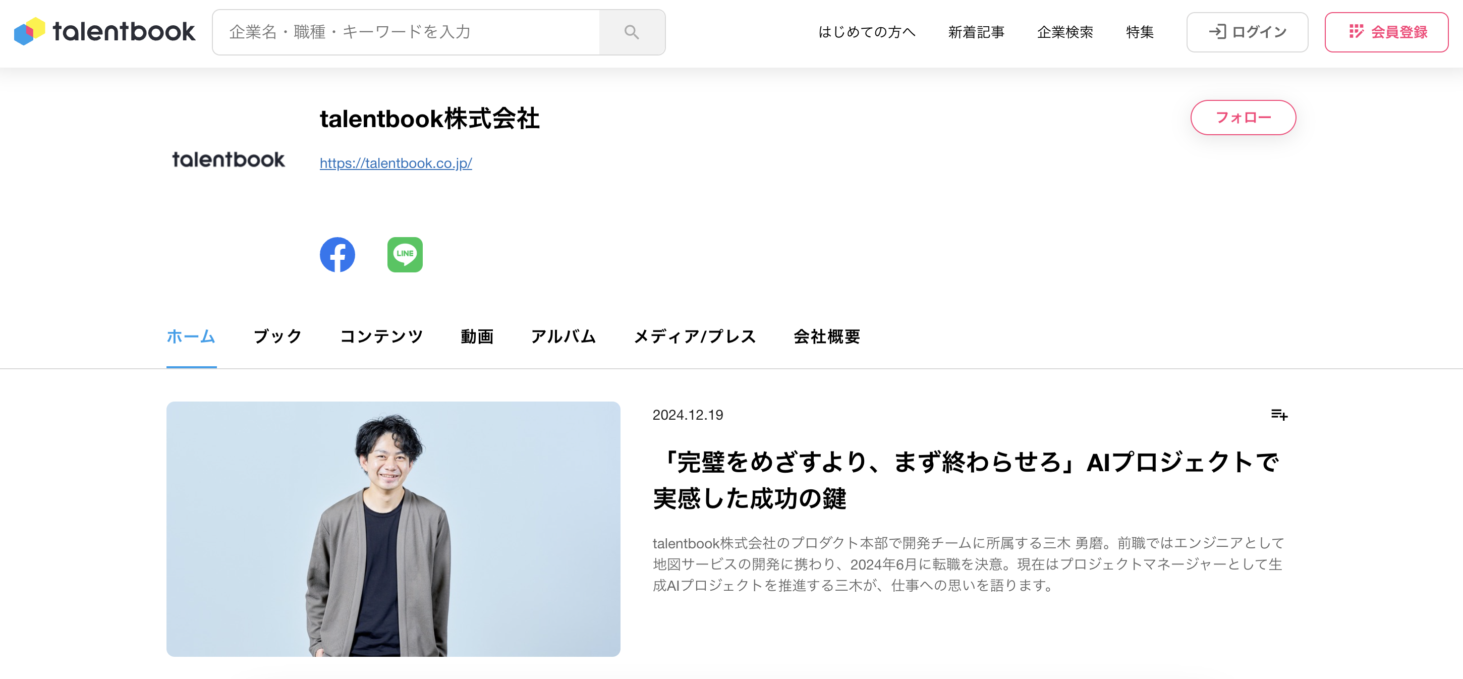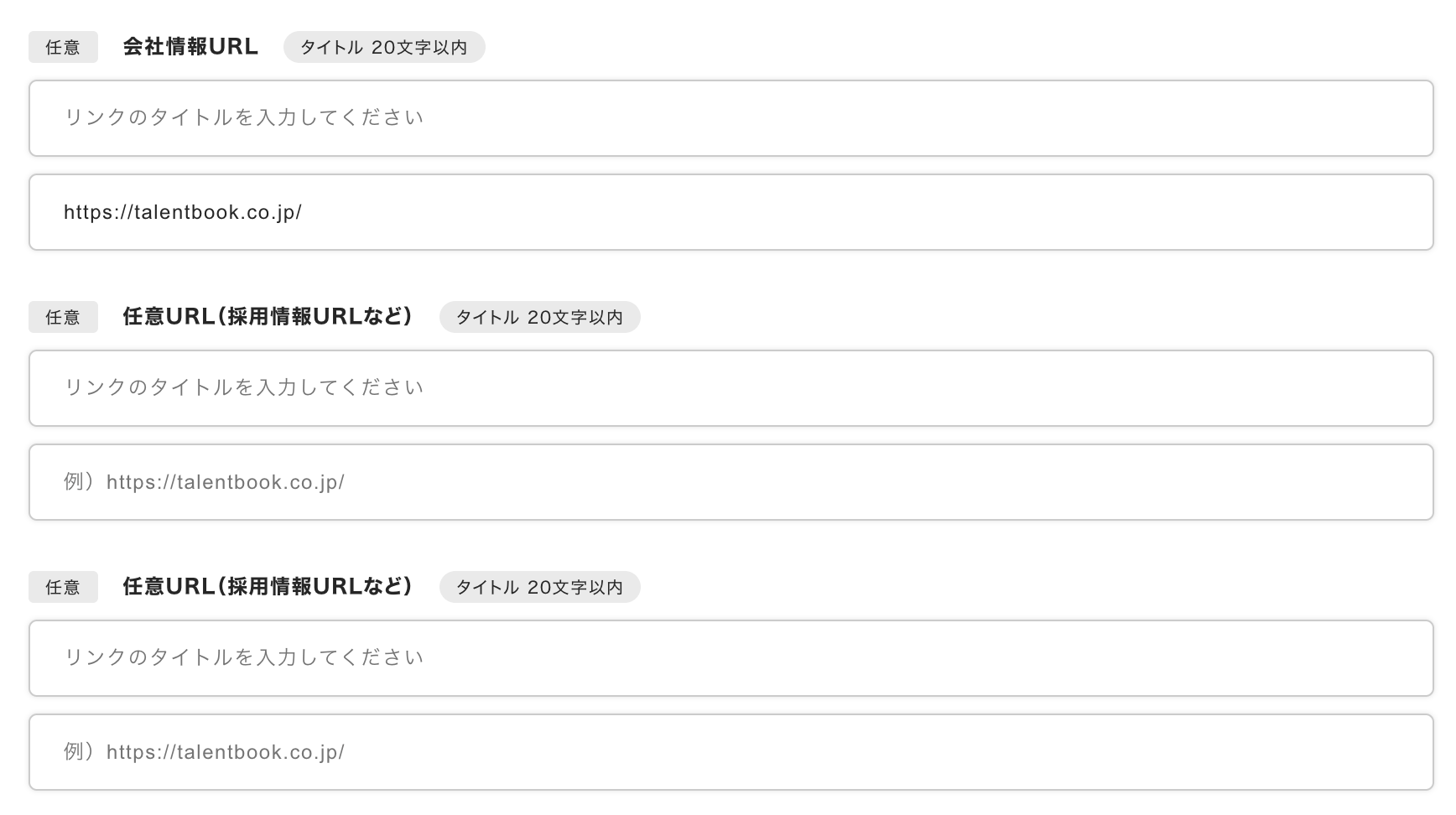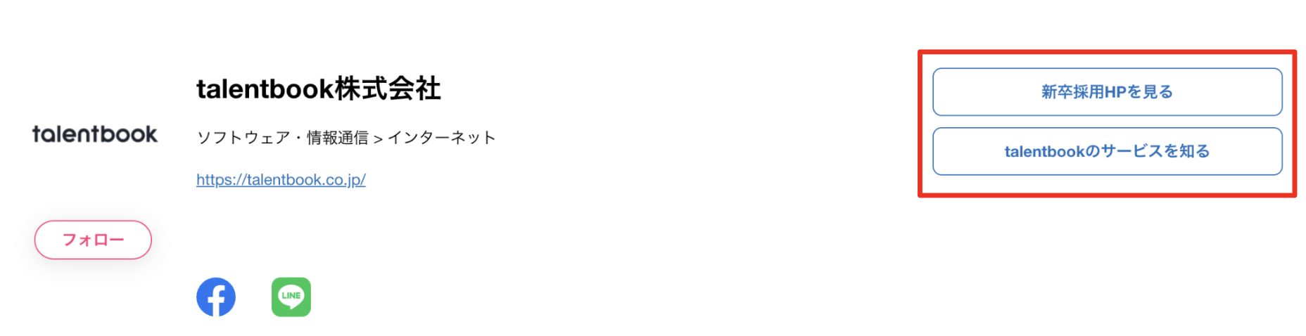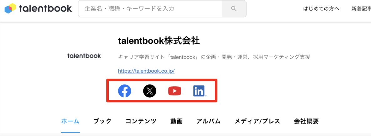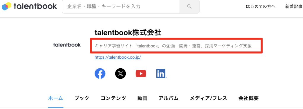 貴社HPへのリンクを設定することができます。talentbookから貴社HPへ流入させたい場合にご設定ください。