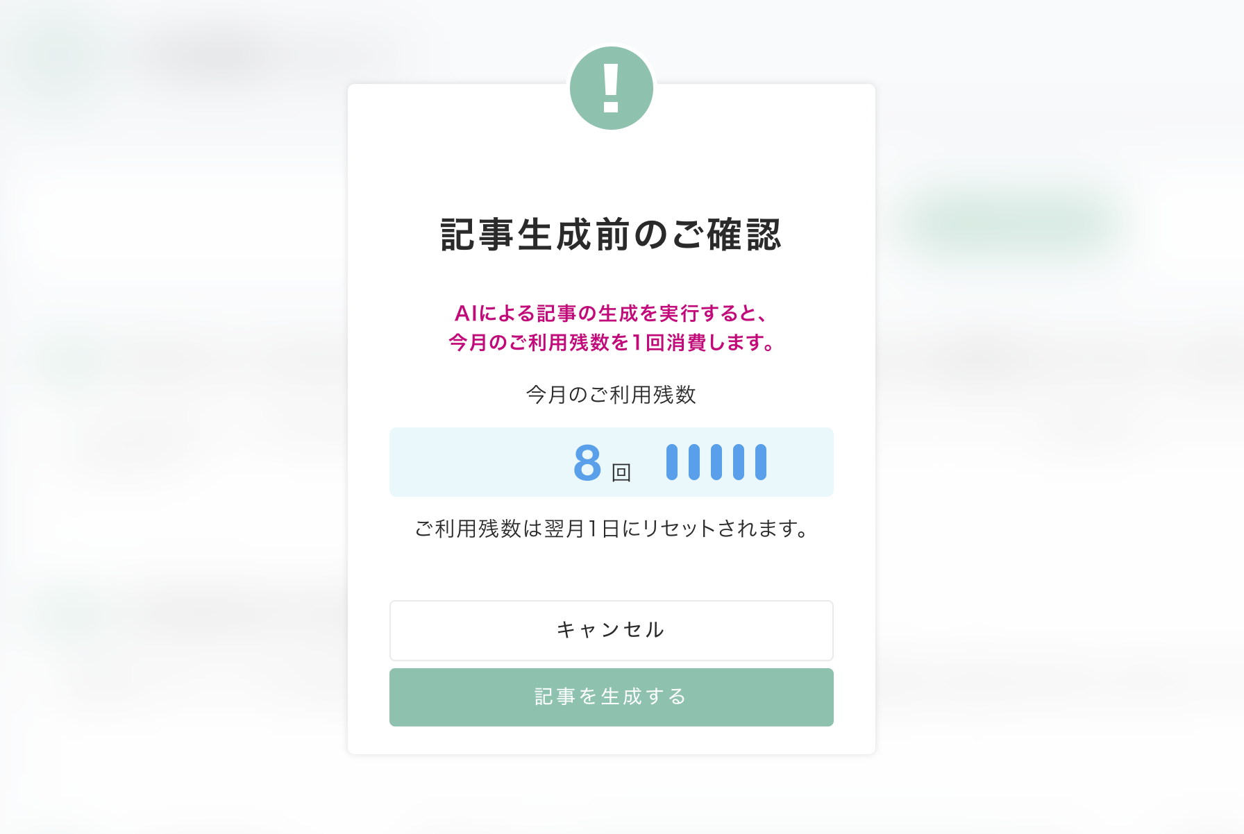 再度「ストーリーを生成」ボタンをクリックすると利用残数が消費されます