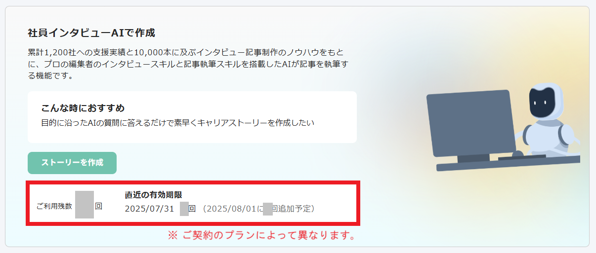社員インタビューAIの利用回数はご契約内容によって異なります。