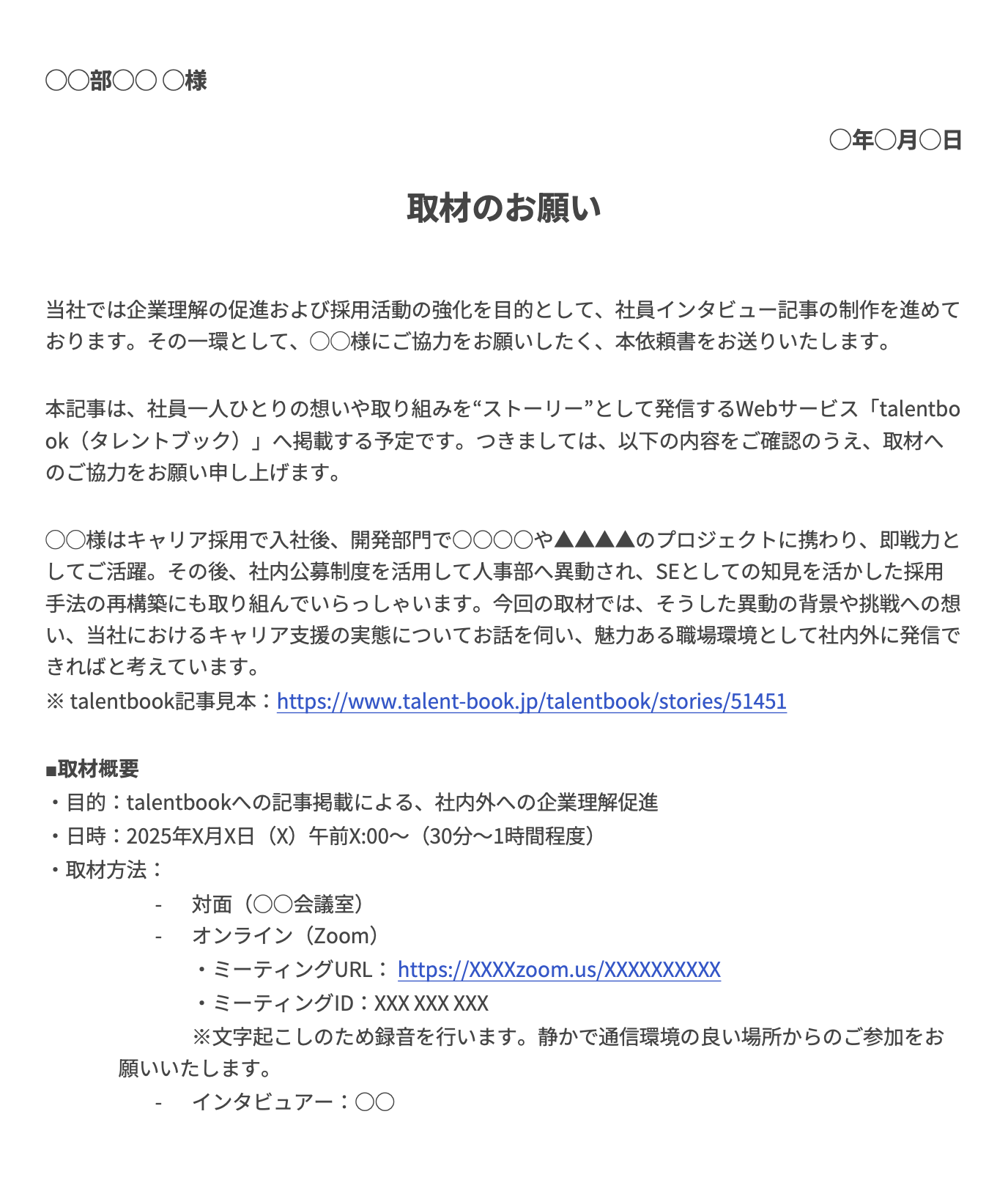 取材依頼書_talentbook_社員インタビューAI_② タレント自身が操作する.docx