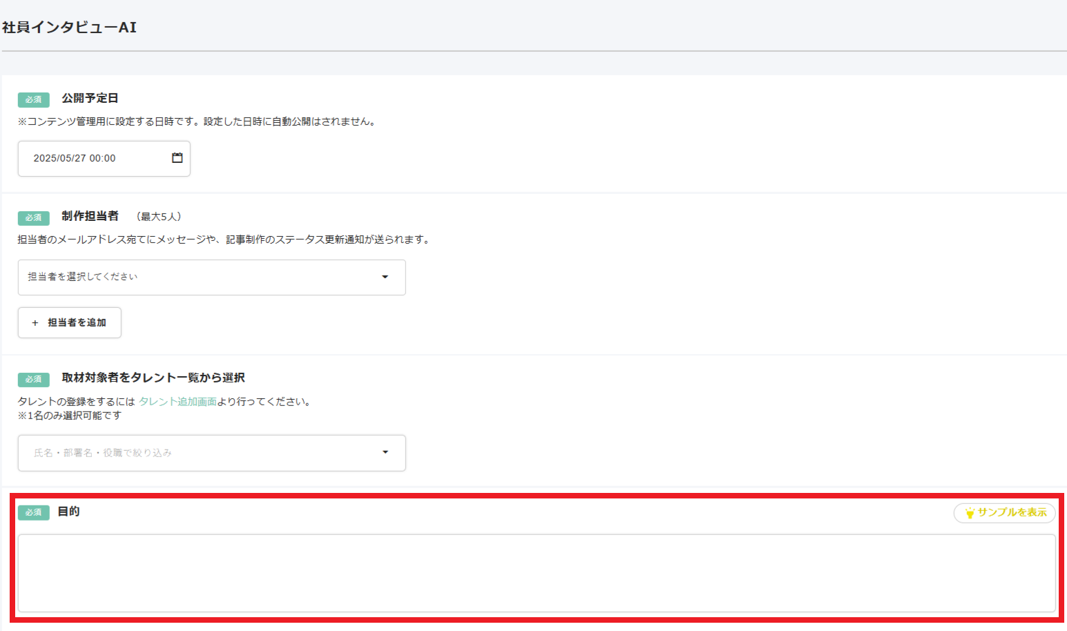 ※「コンテンツ>コンテンツを追加>(社員インタビューAIで作成)>ストーリーを作成」をクリックで入力できます。