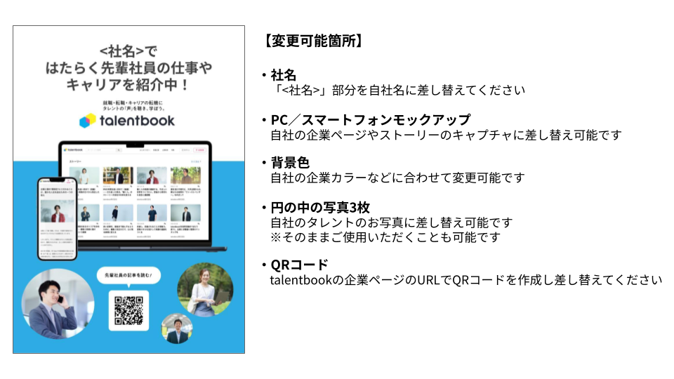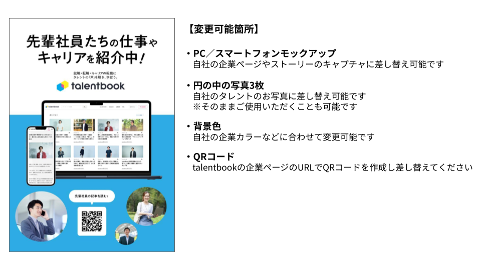 ※QRコードを除き、PC・スマートフォンのモック内のキャプチャや円形の写真はそのままご使用いただけます。