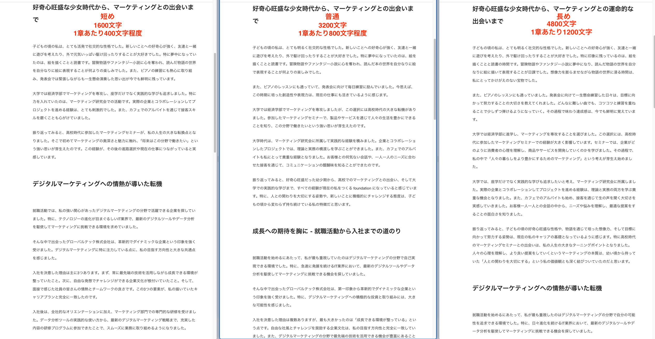 ・普通:1章当たり800文字程度(計3,200文字)