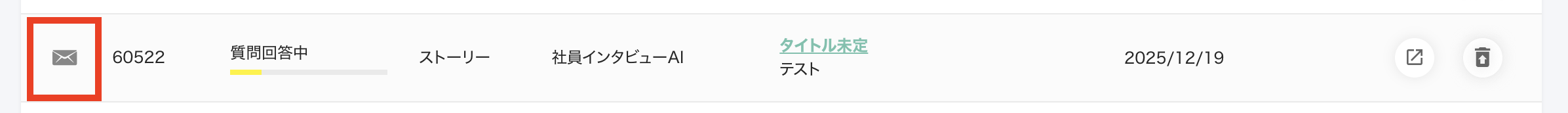 コンテンツ一覧より、取材対象者を編集したい社員インタビューAIの手紙マークをクリックします。