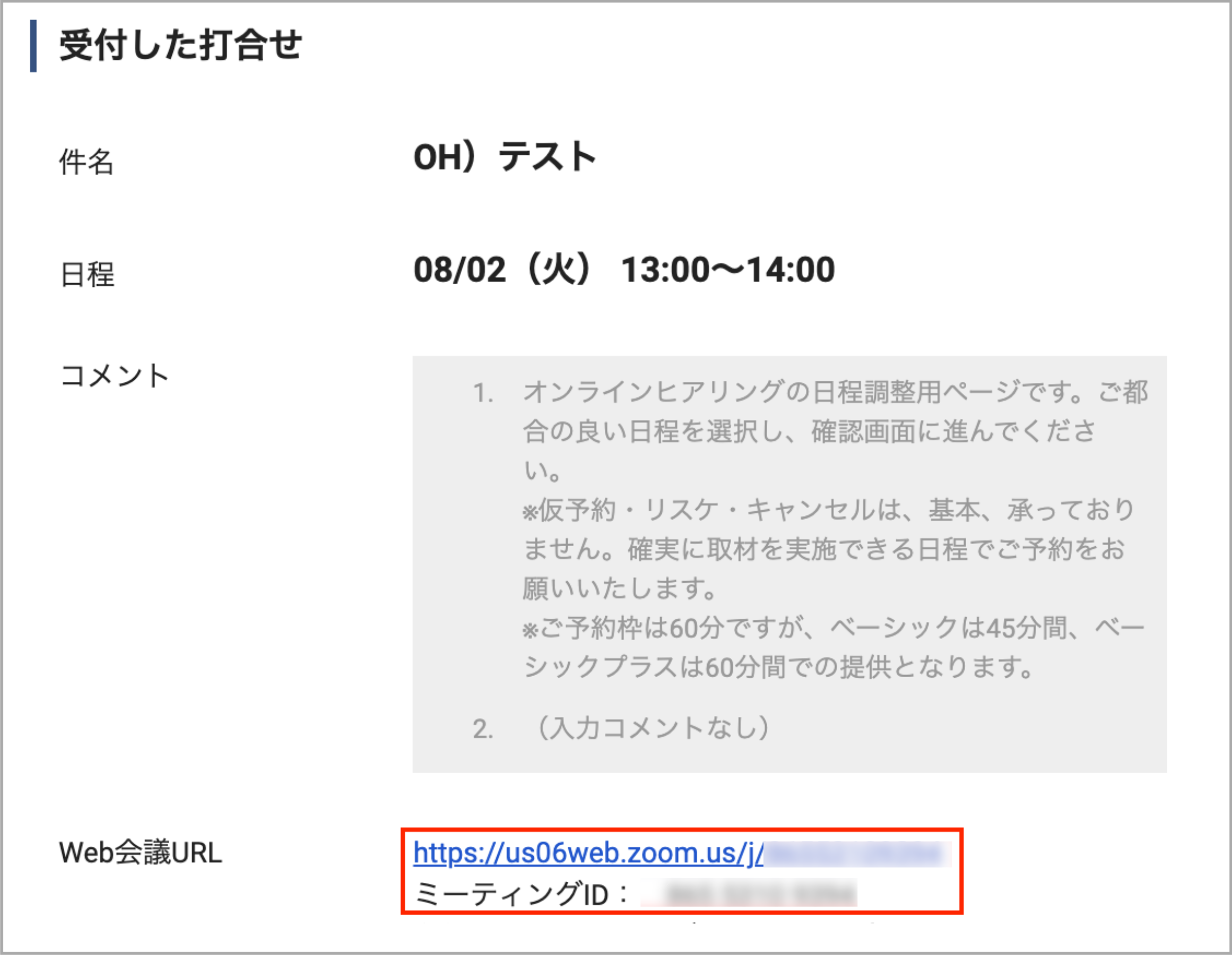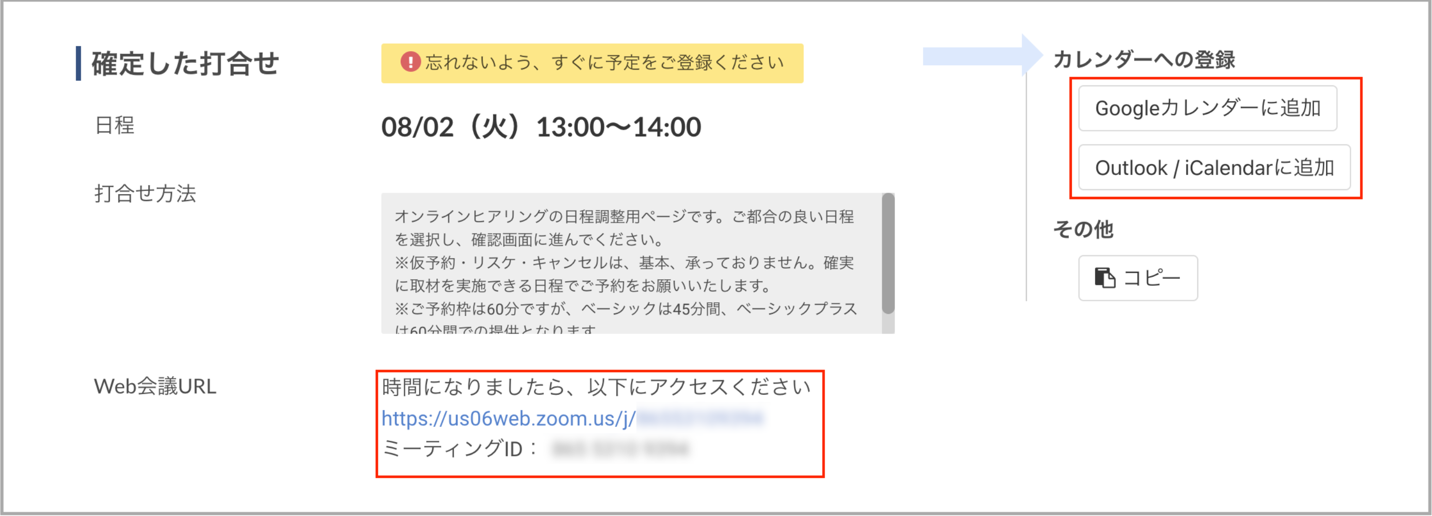 ご予約が即時確定し、ZoomのURLが自動発行される仕組みのため、CMSでの予約確定案内は省略させていただいております。