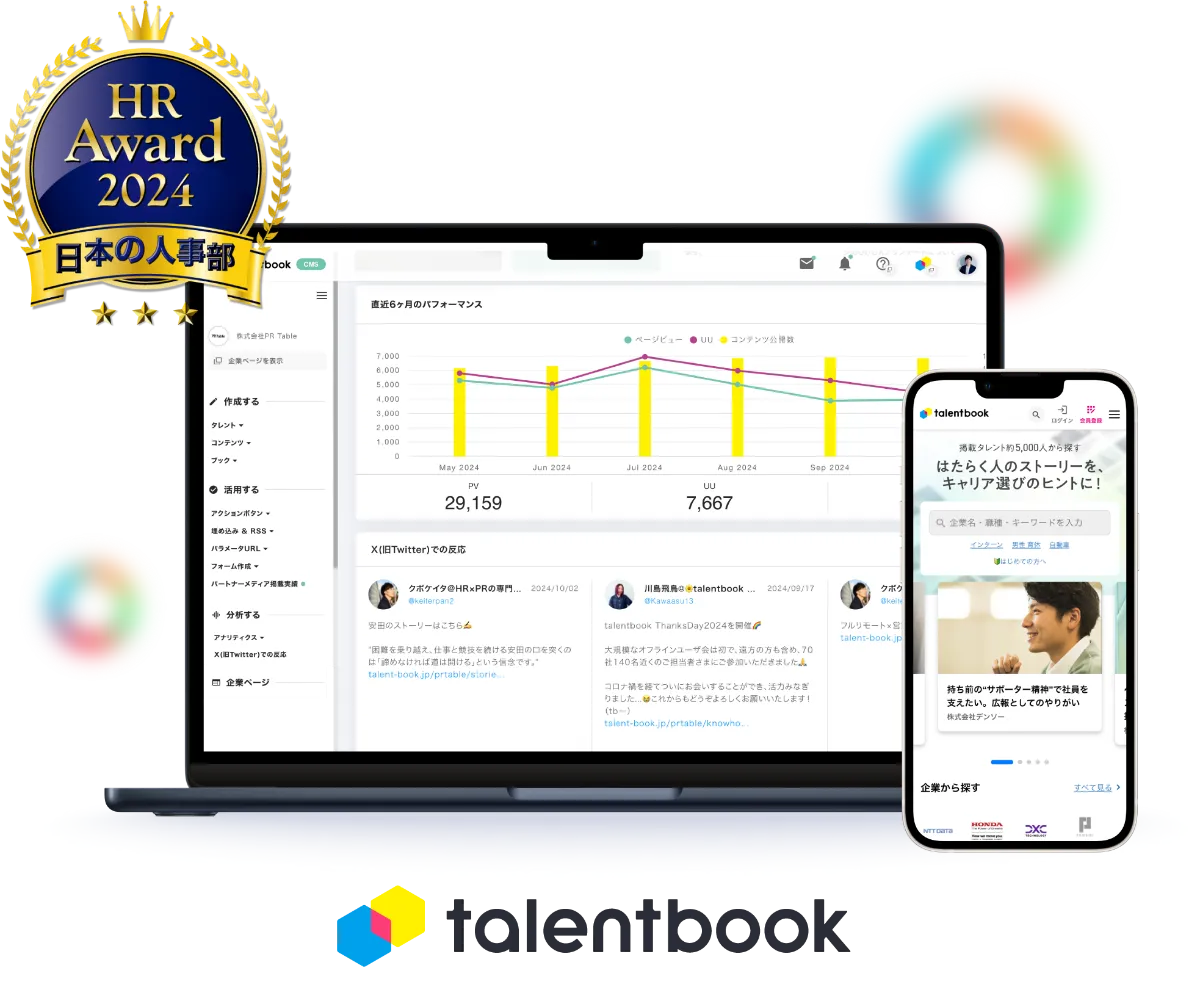 採用広報・採用ブランディングならtalentbook(タレントブック)。1,200社の採用ブランディング支援、1万本のインタビュー記事制作ノウハウを凝縮した「社員インタビューAI」で制作工数を削減!